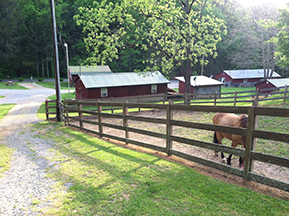 We left Fort Valley Ranch on a bright cold, sunny day and headed south to Tennessee on Route 81. I was pulling the 2 horse trailer with my Ram 1500 and Mike was pulling the 5th wheel RV with his Dodge Ram 3500. After about 4.5 hours we were off the highway and traveling back roads to our next destination. We saw signs for the campground but the roads kept getting narrower and narrower and I worried that our very tall RV was going to have an issue. Cars that were coming toward us had to pull over into the weeds to let Mike and our RV pass. Finally we got to the Cherokee Trails Campground and were able to stop and check in.