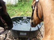 It was misting in the early morning but we went out anyway. We were out for about 3 hours and by the time we turned around and came back we were all sweating. We gave the horses a hose down and let them dry in their stalls with all those shavings—with those big fans on. They had so much room they could roll all they wanted. Mike and I decided they really had the life in that barn!